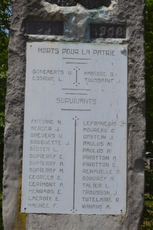 Ce monument fut dressé, puis inauguré en grande pompe le 10 août 1919 en présence de 26 soldats ayant participé et survécu à la guerre, plus chanceux que leurs 4 copains décédés durant le conflit.