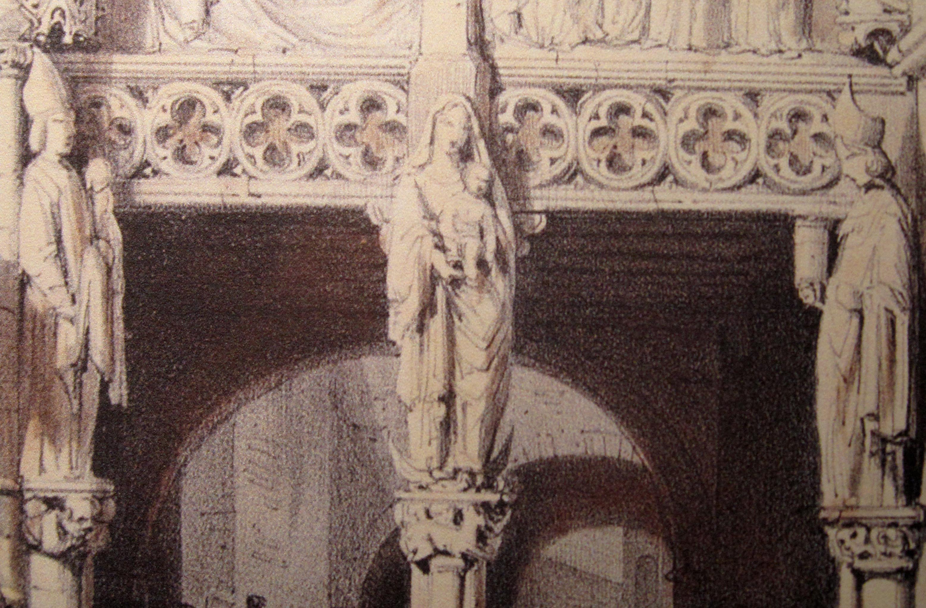 Les 3 statues disparues du Bethléem à Huy. Litho de P.Lauters