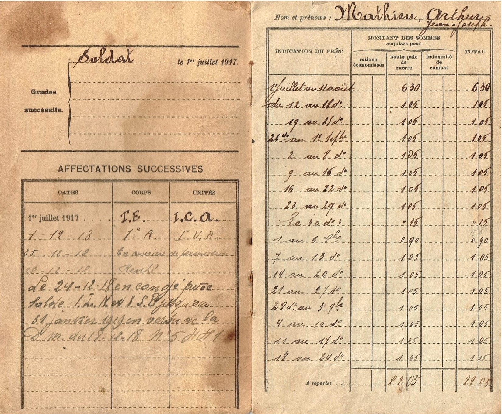 Mathieu_Arthur Ouffet carnet de pécule armée belge