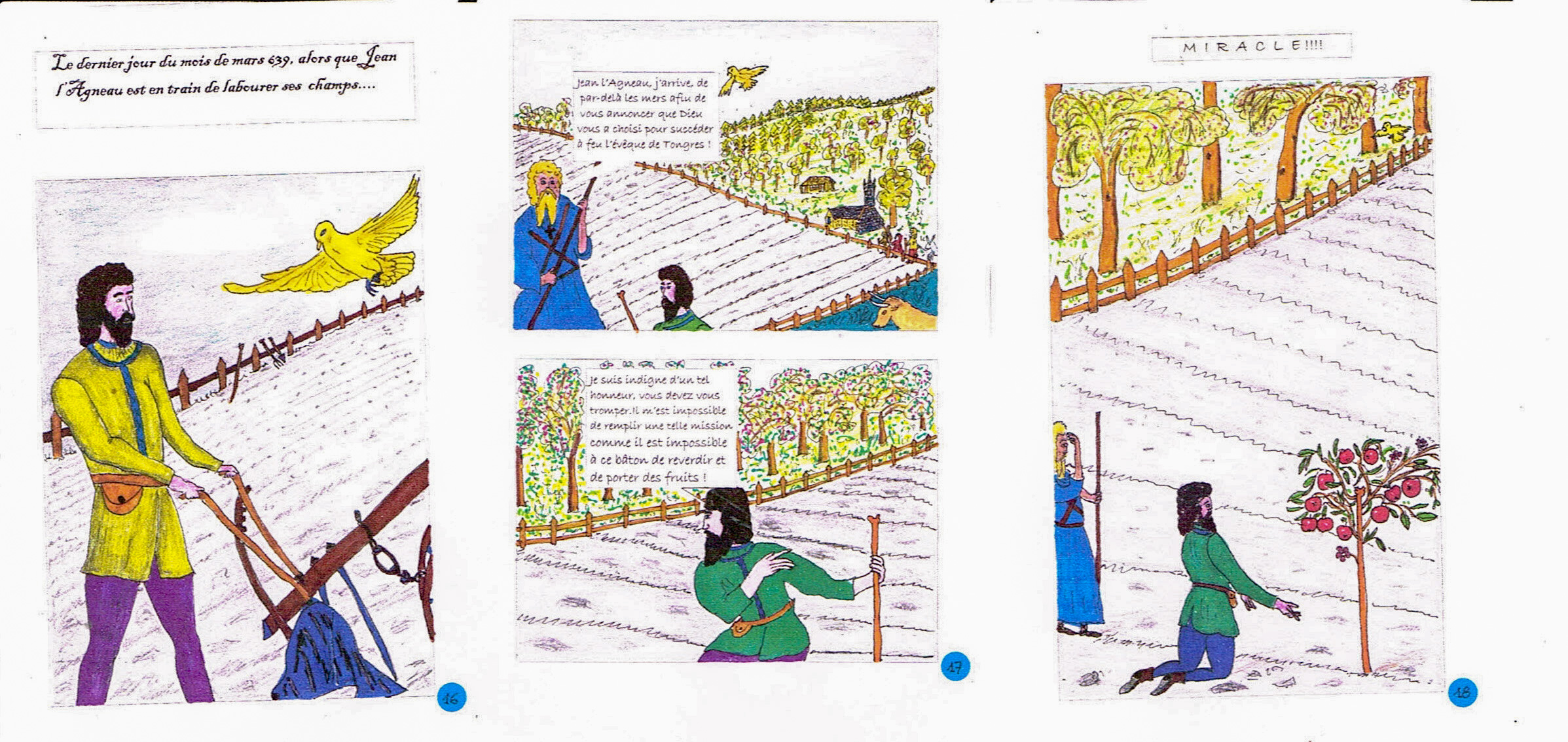 3 pages de la Bande dessinée St-Jean l'Agneau par Freddy Van Daele/2011