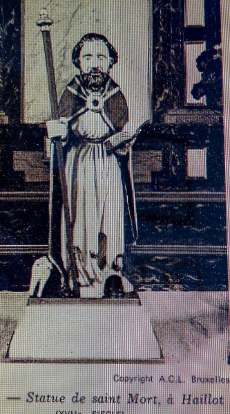 Statue du XVIIe siècle de saint Mort, autel de la chapelle St-Mort à Haillot. Copyright A.C.L. Bruxelles