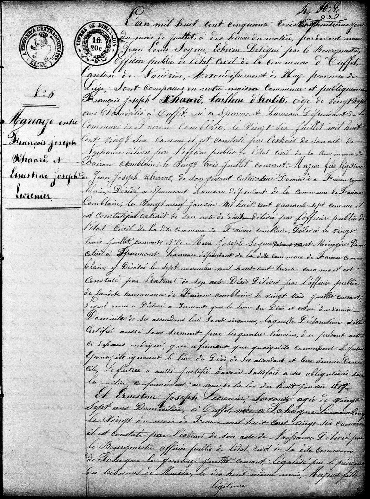 Xhaard_Francois_X_Lecrenier_Ernestine_1_acte_de_00 D311 Ouffet