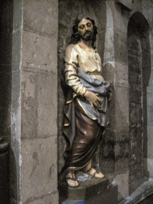 En vous promenant de la gauche vers la droite dans cette superbe collégiale, vous pouvez découvrir 21 statues, de la plus grande (le saint Christophe en bois) à la plus petite (sainte Rita)….
